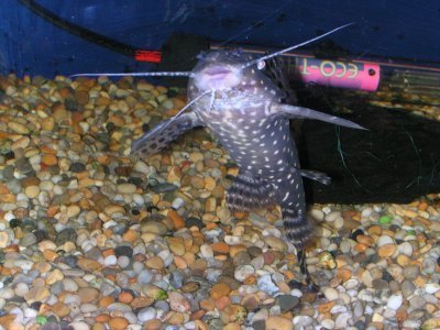 black clown catfish, pearl catfish/squeaker, polka-dot catfish