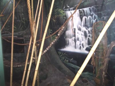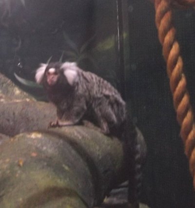 Marmoset habitat. Within the habitat they have placed a large aquarium containing