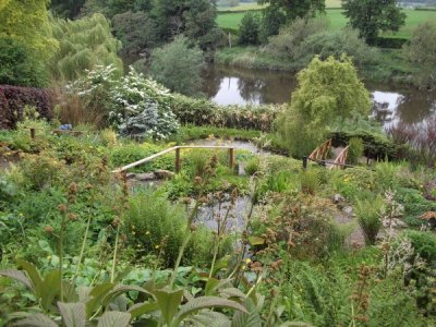 variety of flowers, bushes and trees; perfectly placed to show-off each pond to